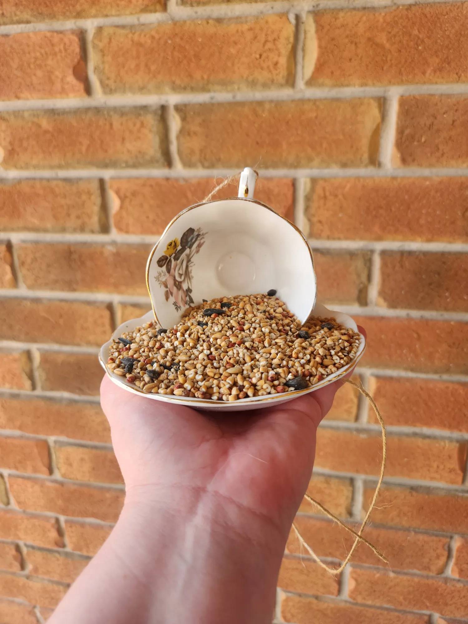 Playing: I recently came across this birdfeeder made out of a tea cup idea on Pinterest. I saved it, and then was able to get several free tea cups and saucers from my local Buy Nothing group. I picked up some glue that works on glass, and let them dry for 24 hours after arranging them. I love how they turned out and I know the birds will too.